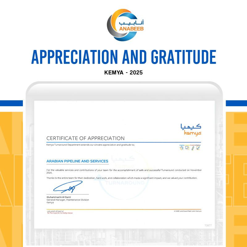ANABEEB is honored to be recognized as the Best in Safety and Contributor at the Yasref Mega Turnaround,