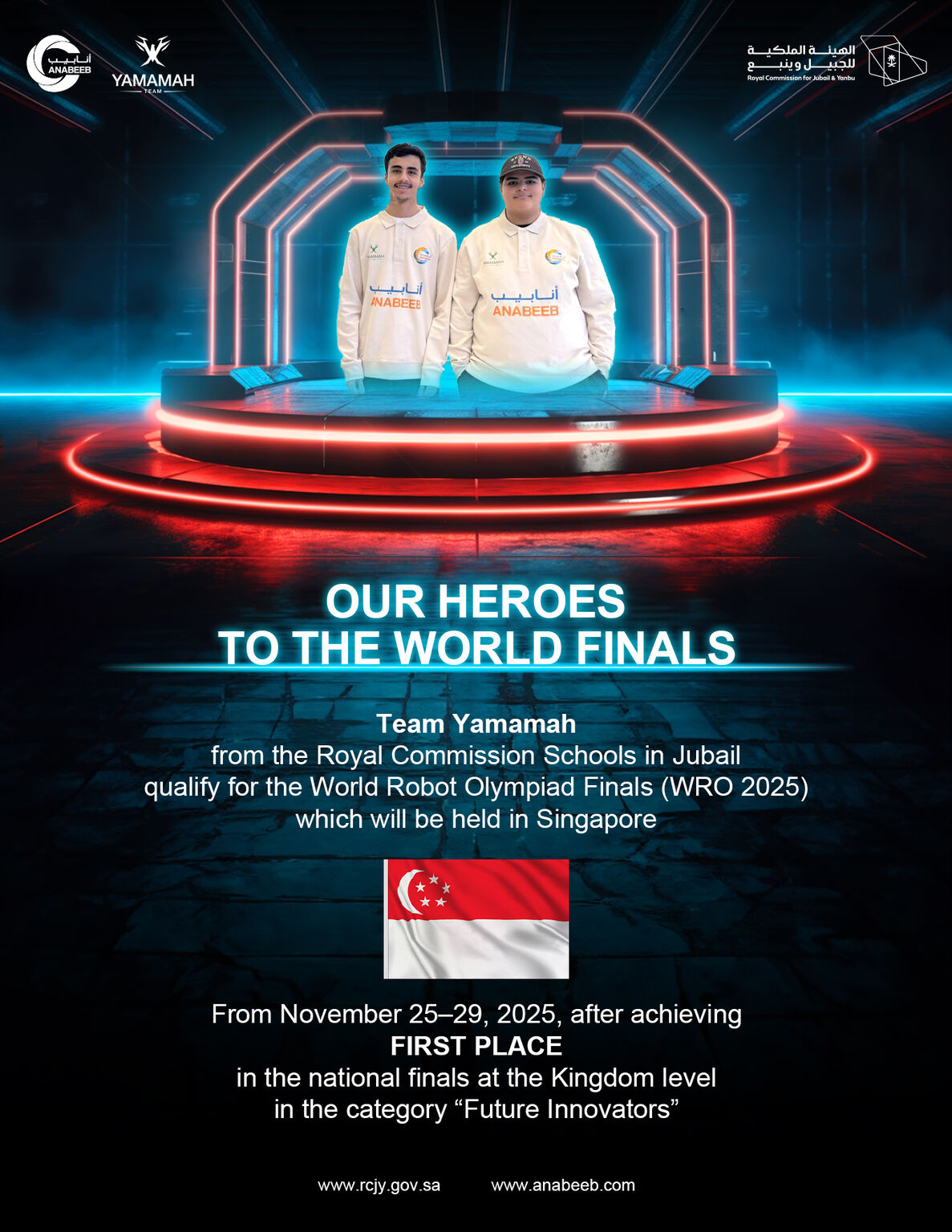 Anabeeb is honored to sponsor and support the outstanding Yamamah team from the Al Ula Secondary School of Royal commission Jubail, who have successfully qualified for the World Robot Olympiad (WRO 2025) World Finals.