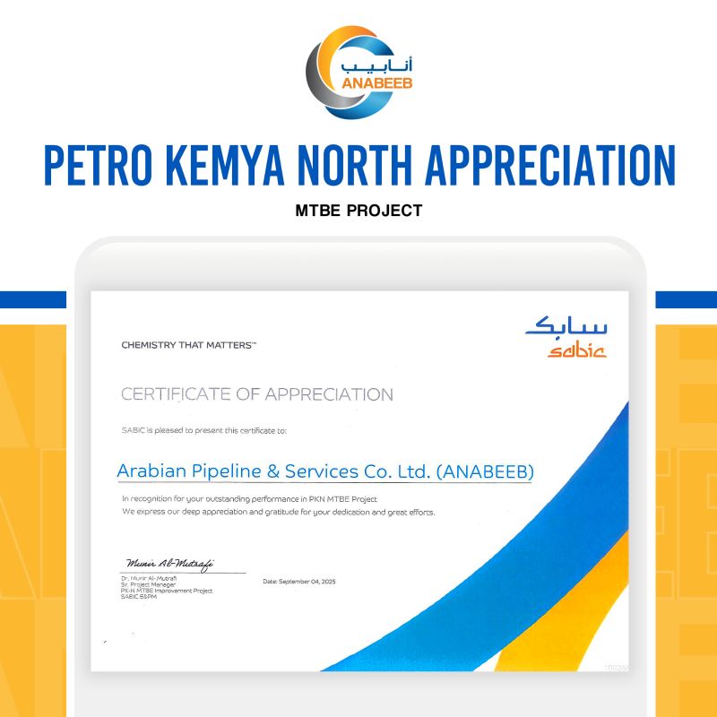 ANABEEB is proud to announce the successful completion of the Petro Kemya North MTBE project. Our team delivered a high-quality outcome while upholding our commitment to the highest safety and quality standards. We appreciate the client's recognition and are grateful for the opportunity to contribute to their success.
