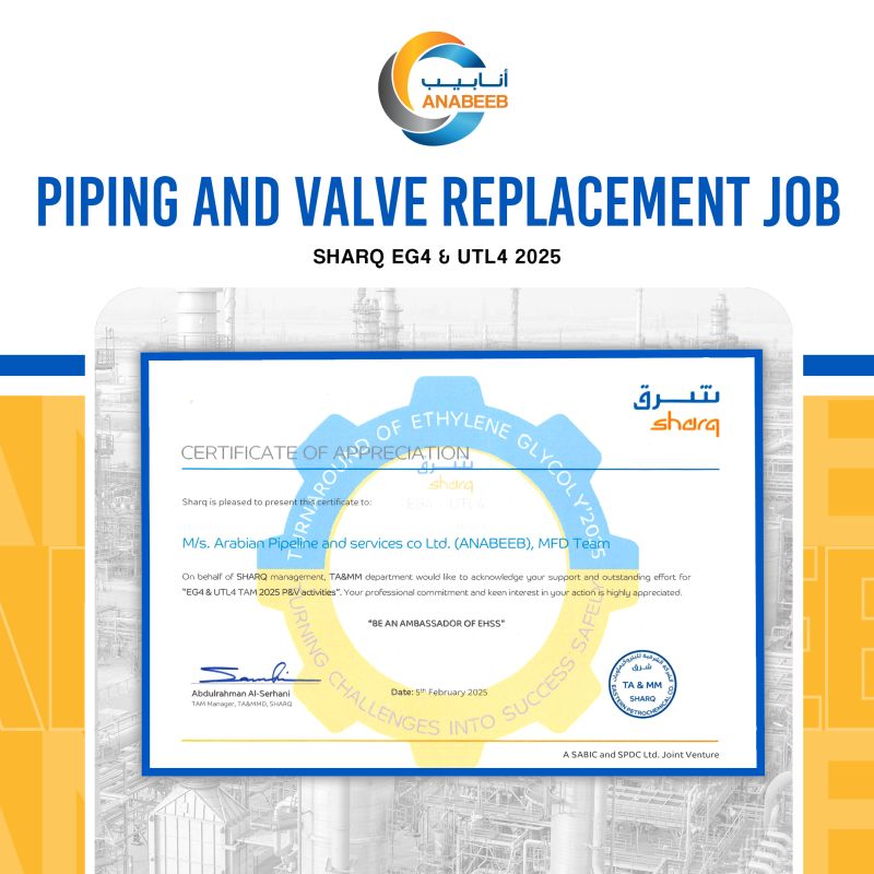 the piping and valve replacement project at Sharq. This achievement highlights our dedication to