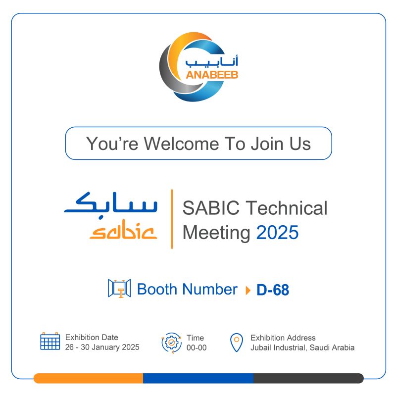 Set your calendars! ANABEEB will be at the SABIC Technical Meeting 2025 in Jubail Industrial from January 26 to 30. Visit us at booth D-68 to know more about our business units and services.